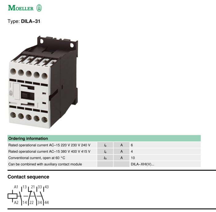 Eaton Moeller DILA-31 415v50hz Coil 10a Relay 3 N/O & 1 N/C contacts